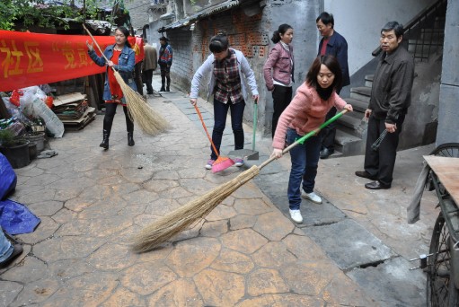 党员代表认真打扫镋钯街75号居民社区