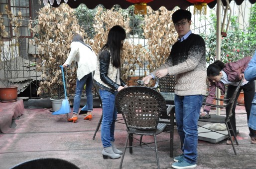 党员代表认真打扫院落