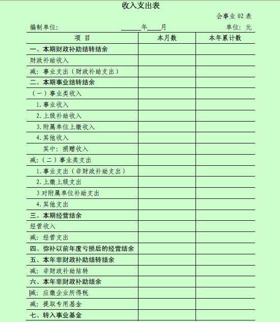 上述(10)至(16)项目,只有在编制年度收入支出表时才填列;编制月度收入支出表时,可以不设置此7个项目。