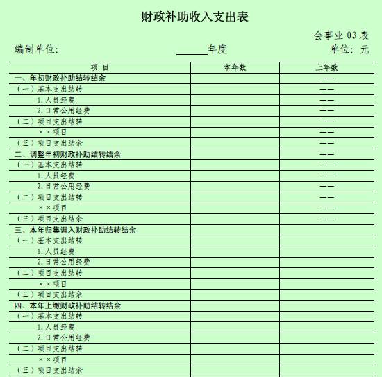 2.“调整年初财政补助结转结余”项目及其所属各明细项目,反映事业单位因本年发生需要调整以前年度财政补助结转结余的事项,而对年初财政补助结转结余的调整金额。各项目应当根据“财政补助结转”、“财政补助结余”科目及其所属明细科目的本年发生额分析填列。如调整减少年初财政补助结转结余,以“-”号填列。